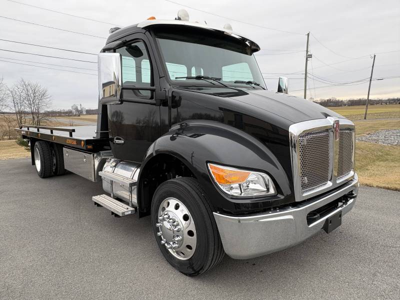 2026 Kenworth T280 Reg Cab 4X2, 26,000 Lb. GVW, Paccar PX7 300HP, Allison 2500RDS, Air Ride, Air Brakes, AM/FM/Bluetooth, Jerr-Dan 22’ Steel Removable Rail 6 Ton Carrier XLP, 10,000 Lb., 3,500 Lb. Wheel Lift, Dual Exterior 5-Function Controls, (2) 60” Stainless Steel Toolboxes, Federal Signal LED Light Bar S/T/T, Rear Lower Work Lights, Maxxima LED Winch Light, Worldwide Mudflaps, V-Bridal Chain w/Clusters, (2) 10’ Tie Down Chains w/Clusters, (2) Ratchets w/Hook, (2) Ratchets w/Chain, (2) “D” Ring Straps, (2) Straps w/Clusters, Fire Extinguisher, Triangles, Wireless Tow Light.