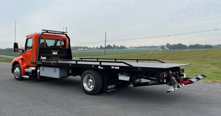 2026 Peterbilt 536 Reg Cab 4X2 , 26,000 Lb. GVW, Paccar PX-7 300HP, Allison 2500RDS, Air Ride, Air Brakes, AM/FM/Bluetooth, Jerr-Dan 22’ Steel Removable Rail 6 Ton Lo-Profile Carrier XLP, 10,000 Lb. Winch, 3,500 Lb. Wheel Lift, Dual Exterior 5-Function Controls, (2) 60” Stainless Steel Toolboxes, Federal Signal LED Light Bar S/T/T, Rear Lower Work Lights, LED Winch Light, Worldwide Mudflaps, V-Bridal Chain w/Clusters, (2) 10’ Tie Down Chains w/Clusters, (2) Ratchets w/Hook, (2) Ratchets w/Chain, (2) “D” Ring Straps, (2) Straps w/Clusters, Fire Extinguisher, Triangles, Wireless Tow Light, 8-Point Tie Down.
