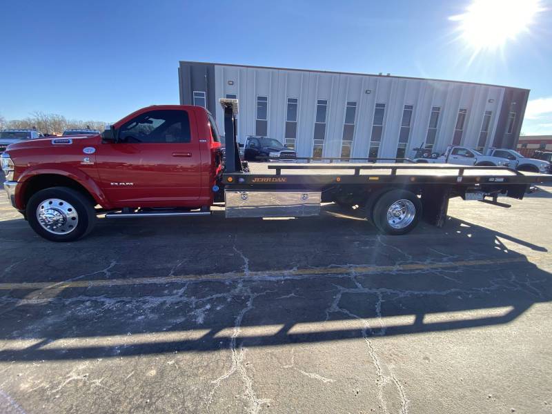 2022 Ram 5500 Reg Cab 4x2, Diesel, Automatic, SLT, Spring Ride, Hydraulic Brakes, 82,992 miles, AM/FM, Jerr-Dan 20' Steel Removable Rail 6 Ton Wide Lo Profile Carrier, 8,000LB Winch, LED Lightbar, (2) 60" Toolboxes
