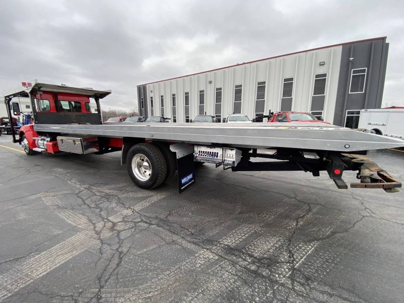 2020 KENWORTH T370 REG CAB 4X2 CHEVRON 4-CAR CARRIER, 33,000LB GVW, 155,518 MILES, DIESEL, AUTOMATIC, AIR RIDE, AIR BRAKES, 30' ALUMINUM BED, 3- 8.000LB WINCHES, 3,500 LB WHEEL LIFT W/ AUTO GRID, WIRELESS REMOTE, 2- 60" STAINLESS TOOLBOXES, WORLDWIDE MUDFLAPS, WIRELESS TOW LIGHT, FIRE EXTINGUISHER, SAFETY TRIANGLES