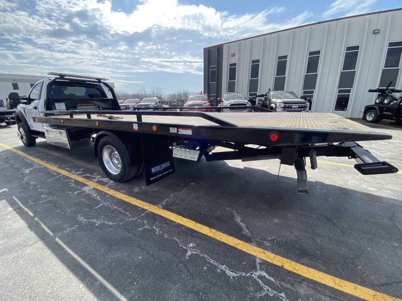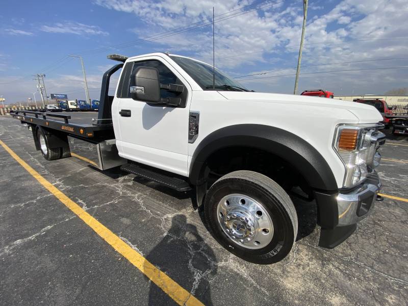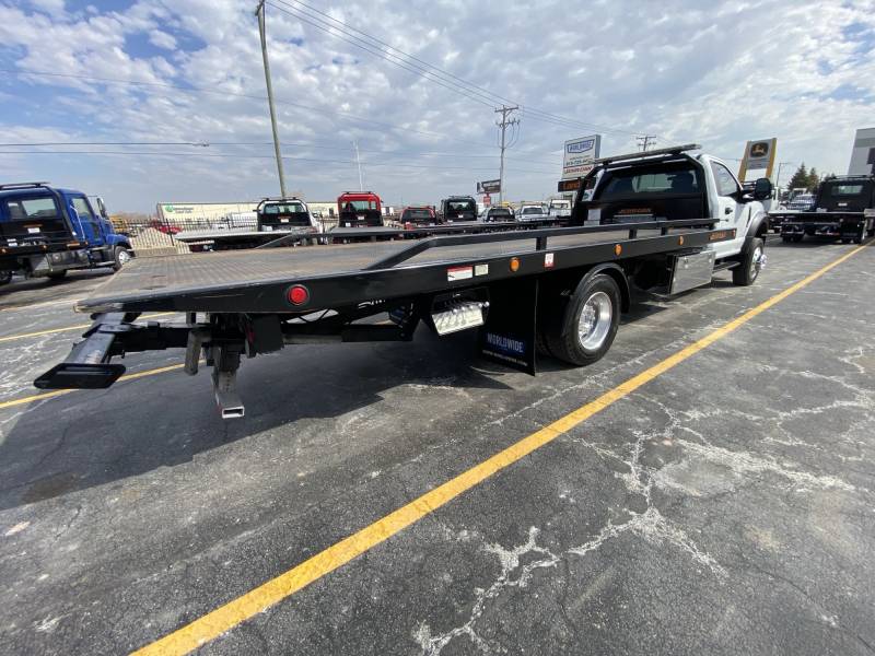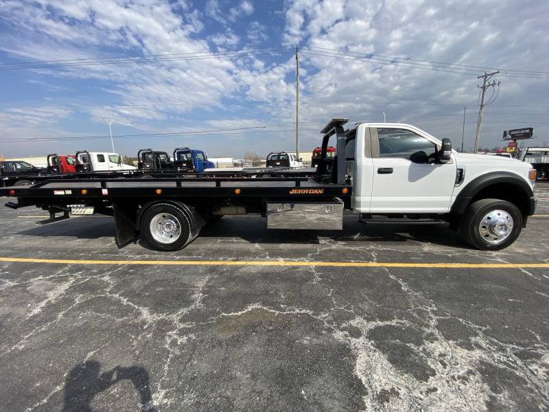 2022 Ford F600 Reg Cab 4x2 XLT, 7.3L V8 Gas, Automatic, Spring Ride, Hydraulic Brakes, 61,518 miles, AM/FM, Jerr-Dan 20' Steel Removable Rail 6 Ton Wide Lo Profile Carrier, 8,000LB Winch, Led lightbar, 2- 48" Stainless toolboxes, 1/2 Poly fenders, Wireless tow light, Fire extinguisher, Safety triangles